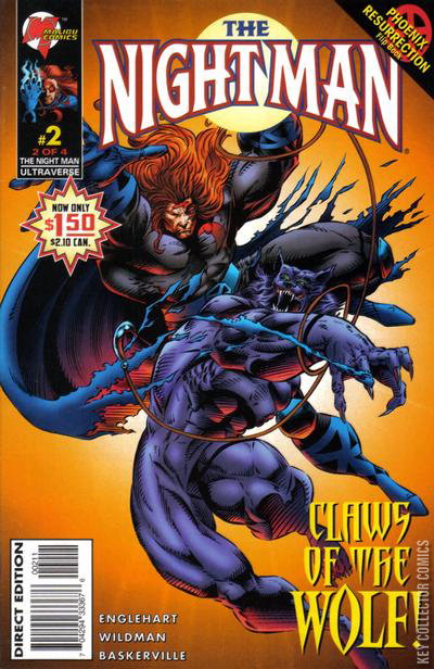 "The wilder shore" The Night Man takes on the Wolf and rescues a couple friends while Rasputin escapes. In the Phoenix Resurrection flip book, the Night Man makes contact with Hellstorm who warns him about the coming multi-dimensional threat of the Phoenix.