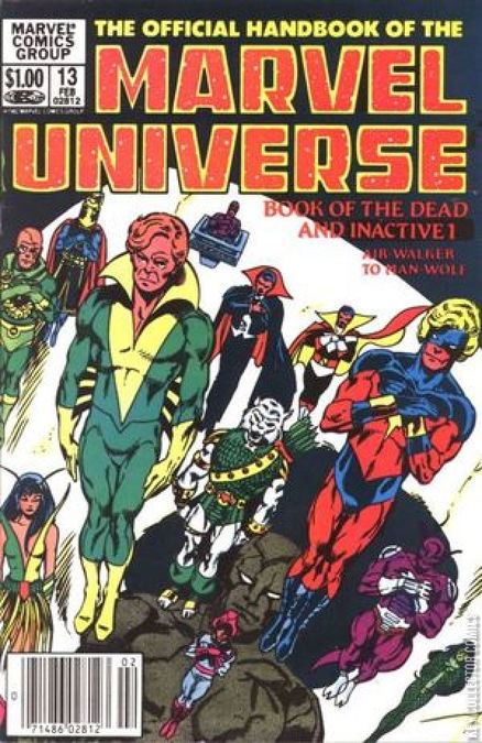 Book of the Dead and Inactive 1. Official Handbook containing profiles on characters listed from Air-Walker to Man-Wolf.