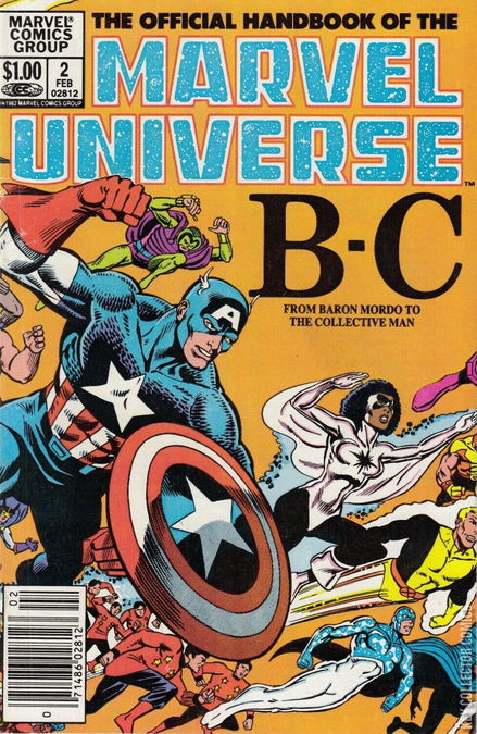 Official Handbook containing profiles on characters listed from Baron Mordo to the Collective Man.