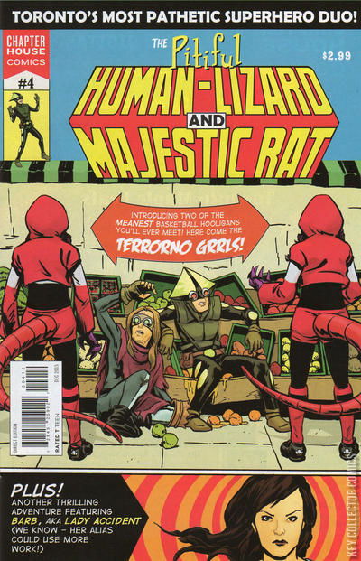 The Lizard and The Rat Go To The Market Toronto's pretty decent superhero the Human-Lizard teams up with his pal Majestic Rat against Toronto's meanest basketball hooligans the Terrorno Grrls! Also, another thrilling adventure featuring the mysterious Barb. Chapterhouse Comics proudly presents the fourth of five reprinted issues of Harvest Loo's The Pitiful Human Lizard.
