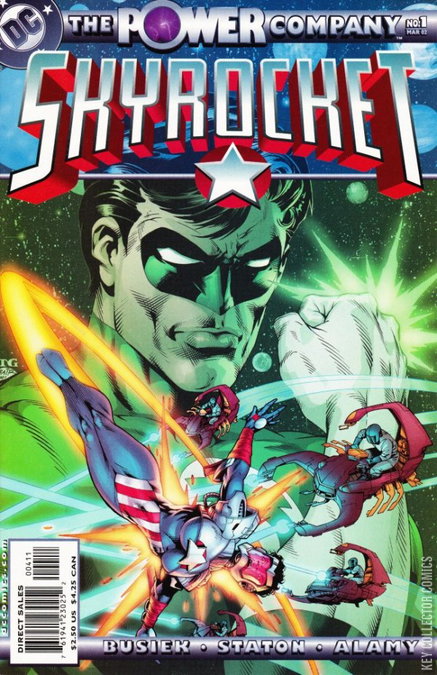 Guest-starring Hal Jordan, at the height of his career as Green Lantern! An intensely-patriotic Navy aviator visits home - only to see her life torn apart by the terrorists-for-hire known as Scorpio. Donning a hi-tech power-harness capable of transforming energy from one form to another, she takes the battle to Scorpio. And with Green Lantern's help, Skyrocket sets out on the path that'll make her the local super-heroine of St. Louis, and field leader of the Power Company.