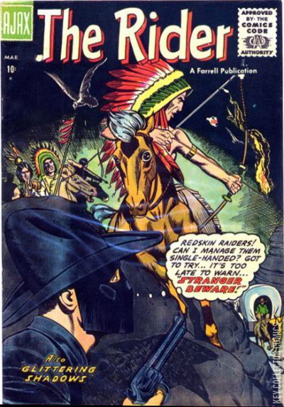 Home / Farrell / The Rider / The Rider #1 Farrell Released {{ issue.publishedDate|to_date|date:'F Y' }} The Rider #1 Add to Collection Want It Synopsis No synopsis available. Add to Collection Buy it on eBay Buy on eBay Low $1 Mid {{ issue.priceMedium | price }} High $8 Synopsis No synopsis available. Details Series The Rider Cover Date March 1957 Pages 36 UPC N/A Cover Price $0.10 Final Order Cutoff N/A Creators No creators listed. Price Guide Log in or subscribe to access detailed graded price information and market insights. Log In Subscribe