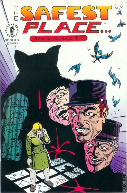 Steve Ditko, the artist famous for creating The Amazing Spider-Man, had a long history creating weird science-fiction and horror comics in the fifties and sixties. Ditko was himself a loner who was virtually never interviewed or photographed. Not surprisingly, his specialty was in creating characters who didn’t “fit in.” Social outcast Peter Parker was but one example of this. This one-shot is Ditko at his alienated best. It’s set in a totalitarian regime where the oppressors are involved in complicated schemes for power, with deadly consequences to those around them. The catalyst is a roll of film showing military preparations, taken by agents working against the regime. One by one, the agents are tracked down, until the trail leads to a harmless college professor and his wife. The professor is killed and his wife brutally questioned, but the film is never found by the police. Because it’s hidden…in the safest place in the world.