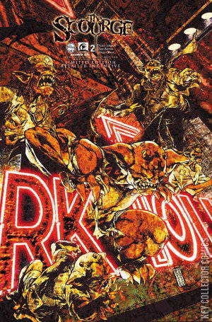 They are taking over... From the innovative mind of acclaimed movie producer Gale Anne Hurd, and written by superstar writer and visionary Scott Lobdell, comes this summer's biggest blockbuster new series - THE SCOURGE! All hell breaks loose on the island of Manhattan as NYPD Swat Officer Jon Griffin attempts to subdue his now-transformed friend before he is able to wreak more havoc on the innocents of the city. However, Griffin's worst nightmare is realized when he sees just how widespread the epidemic, which turns people into gargoyle-like creatures is, and one thing's for sure-Times Square will never be the same again! Featuring the astounding artwork of series artist Eric Battle, and colors by Jorge Fares, THE SCOURGE #2 is set to infect the comic book community like never before!