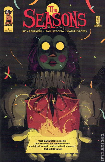 SERIES PREMIERE Summer, Winter, Spring and Autumn are the Seasons Sisters, the daughters of the world-renowned Seasons Detectives. Ten years ago, their famous parents disappeared. Left to raise themselves, the sisters formed an unbreakable bond. Now that bond is tested as the sisters fall prey to sinister forces. The youngest sister, Spring, is the last hope of saving them from a fate worse than death. Will Spring be able to piece her shattered family back together before it’s too late for them all? RICK REMENDER (BLACK SCIENCE) and PAUL AZACETA (OUTCAST) weave an elevated tale of whimsical horror unlike anything ever experienced in comics and it all starts with this double-length premiere issue! Perfect for fans of BOUNDARY-BREAKING HORROR in all forms.