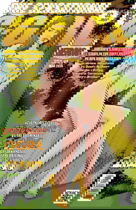 First, there are mysteries to be solved when the Sensational G-Girl wakes up out of a sound sleep, and finds herself smack in middle of a mysterious jungle forest, with a beautiful goddess as her guide. Who brought her here? And why? Find out in this brand-new G-Girl adventure, by Dennis Mallonee and Gaetano Petrigno. Then, learn "All About the G-Girl" in a brand-new tale by by Dennis Mallonee and Giancarlo Carracuzzo. Thirdly, when Flare and the Black Enchantress decide that Billi Jayne needs a new wardrobe, it's time for a "Shopping Day," by Dennis Mallonee and Henry Martinez. Also, the G-Girl's favorite frenemy, the sinister Spiderbaby, takes on the abominable Ogre in a brand-new adventure by Terrance Griep, Mauro Mandalari, and Daniele Nicotra. And to round things out, it's yet another brand-new adventure, this one by Steve Perrin and James Webb, featuring an untold tale of the G-Girl's grampa, the one-and-only original GIANT!