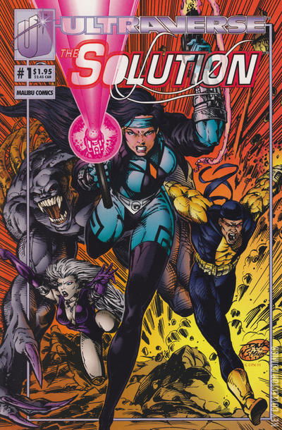 "The Problem" - Written by James Hudnall. Art by Darick Robertson and John Lowe. Cover by Darick Robertson and Mike Miller. Whenever there's a problem, the Ultraverse has...The Solution. The Dragon Fang stole Lela Cho's company. Now, armed with wetware that she used to produce, Lela Cho has gathered a group of trouble shooting mercenaries to help other corporations prevent truly hostile takeovers. In a world with ultra-enhanced problems, you only have one Solution! Several variations of this issue exist. As it is currently understood: A Direct Edition with a $1.95 cover price and no barcode, which came bagged with a trading card. A Newsstand Edition with a $2.50 cover price and barcode, which came bagged with a trading card. A Silver Foil Edition with a $1.95 cover price. Unclear if these came bagged with a trading card.