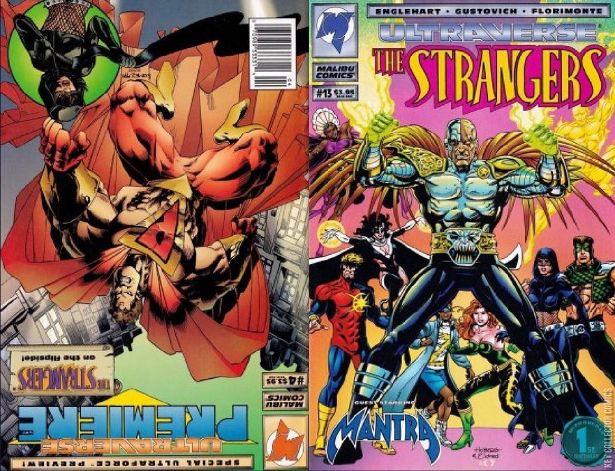 Just back from their first epic, the team is confronted first by Boneyard, and then by Mantra as we begin the Strangers/Mantra crossover, which concludes in Mantra (1993 1st Series) #12! It seems Boneyard wants the "artificial magick" powers Atom Bob generated during the epic, and Mantra's determined that he won't get them! Along the way, Mantra and Spectral have a very interesting discussion. Plus: Prime stars in "Anatomy of a Hero: Part 2"; Lady Killer stars in "Market Realities: Part 1"; and a double-page spread of Hardcase and Choice by Bryan Hitch & Andy Lanning!