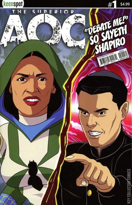 Alexandria Ocasio-Cortez, the most celebrated and obsessed-over freshman congresswoman in history, contains so many multitudes that she cannot be limited to just one comic book! Spinning off from blockbuster The Donald Who Laughs, this new adjective-packed title chronicles the superior adventures of America's favorite bartender-turned-congresswoman-turned-super-heroine, starting with the shocking reveal of how she got her bug-based superpowers. The media calls her the Green Widow, and the Internet calls her Sex Spider (she's not a fan of that one), but we simply call her The Superior AOC!