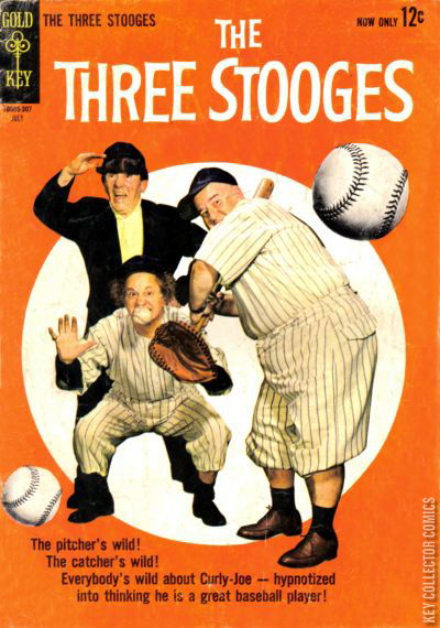 The Three Stooges in "Double Play" in which Curly is hypnotized by crooks to impersonate a famous baseball player and "Fortunes and Feathers." Issue also has backup feature Professor Putter in "A Fishy Situation," one-page text feature "Bartered Bird," and one page "Keys of Knowledge" educational feature.
