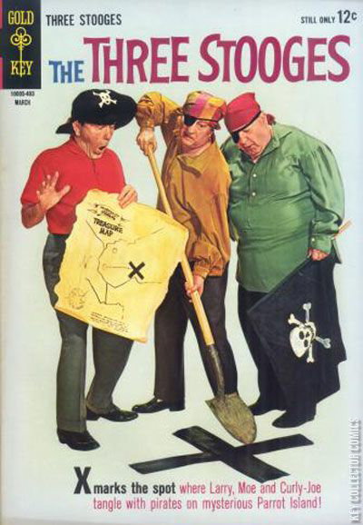 The Three Stooges in "The Pirates of Parrot Island" in which the Three Stooges go out to sea but end up on a pirate ship and "Too Many Aunts." Issue also has backup feature Professor Putter in "Love At First Fright," one-page text feature "N- Yuk! N-Yuks!" and one page gag strips.
