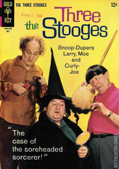 The Three Stooges in "The Case of the Soreheaded Sorcerer" in which the Three Stooges battle an evil sorcerer in the days of knights and "Dumb Luck." Issue also has backup feature The Little Monsters in "Battle of the Boos," one-page text features "N-Yuk! N-Yuks!" and "Dear Stooges" and one-page gag strips.