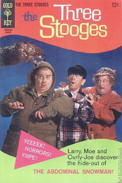The Three Stooges in "On The Trail of the Abdominal Snowman" in which the Three Stooges travels lead to adventure and a meeting with the abdominal snowman. Issue also has backup feature The Little Monsters in "The Sinister Stairway," one-page text feature "Dear Stooges," Gold Key Comics Club News features, and one-page gag strips.