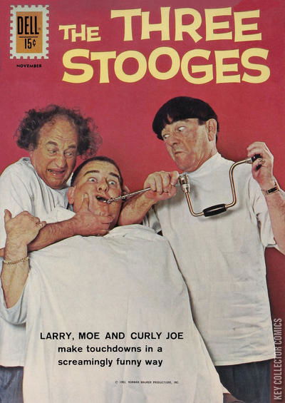 Professor Putter begins. NOTE: Issues #1-5 are under Four Color #'s: #1 is FC#1043; #2 is FC#1078; #3 is FC#1127; #4 is FC#1170; ans #5 is FC#1187. Photo on cover. The Three Stooges in "Football Phonies" in which the Three Stooges try to prevent a football game from being fixed by crooks and "Biceps Battle." Issue also has backup feature Professor Putter in "Outsmarted Smarty," one-page text feature "The Haunted Ferryboat," and one page gag strips. No story/art credits given. 36 pages, full color. Cover price $0.15.