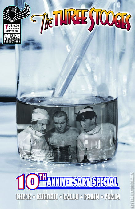There are comedy greats, even comedy legends, and then theres The Three Stooges -- a legacy of laughs spanning the world and bringing together generations of fans! Fresh off their 100-year celebration of all things Stooges, American Mythology plans to keep the party rolling with their very own special 10-year anniversary issue! Thats ten consecutive years of new slaps, whaps, and eye pokes making the company the second longest Three Stooges publisher in history! This one is a must for every Three Stooges fan out there, and is packed with stories, gags, and special looks back to keep the nyuks rolling. Dont miss out! This is the Three Stooges event of the year! Tell your friends, neighbors, and fellow knuckleheads to order their copy today!