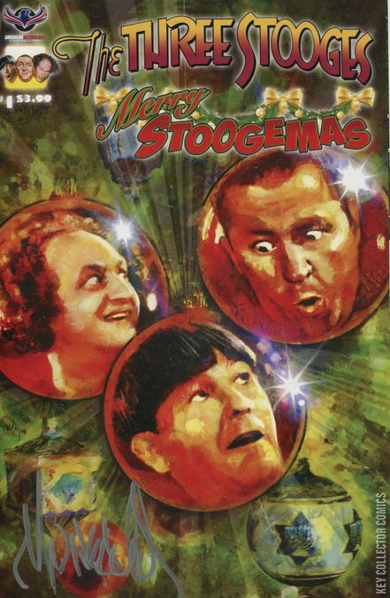 The Boys are back and this year even Santa isn't safe from their antics! Larry, Curly, and Moe take on the holidays as only they can with brand new stories and classic chuckles for all. Add a little merriment to your yuletide and give the gift of Stooges with a comic book that's perfect for stuffing a stocking. Available with a Painted Cover by Mark Wheatey, Holiday Illustrated Cover by Greg LaRocque, a Color Photo Cover, Blank Sketch Cover, and the very rare B&W Retailer Photo Incentive Cover.