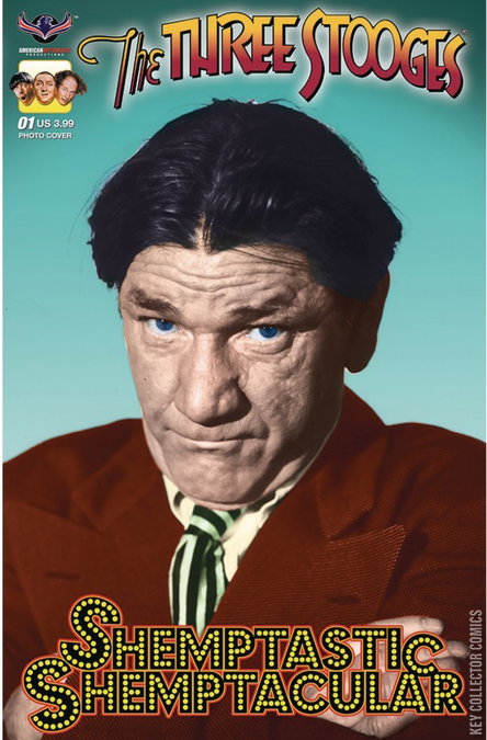 It's amazing! It's Shemptacular! It's Shemptastic! It's Shempendous! Stooge fan favorite Shemp finally takes center stage in the Shemptastic Shemptacular Special! He's the loveable lug with a one-of-a-kind mug. Join Larry, Moe, and Curly in this special tribute to Shemp featuring stories centered on the funnyman. The Shemptastic Shemptacular comes with four covers, Main by Greg LaRocque, Front And Center by the Fraim Brothers, a Color Photo Cover, and a Black & White Retailer Incentive Photo Cover.