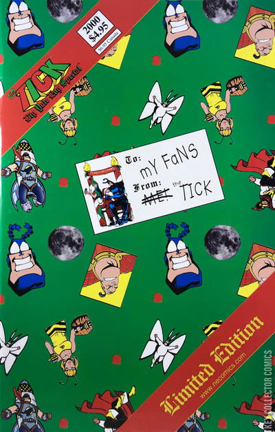 The Tick and Arthur have a house guest for the Christmas season! The problem is it's Tuun-La, Not Of This World! Arthur is worried that Tuun-La doesn't really share the Christmas spirit ? after all, his goal is to destroy all of mankind! But The Tick is sure he can teach the loathsome space alien the true meaning of the holiday. Also available in a Limited Edition Deluxe Format Cover, featuring never-before-published Ben Edlund artwork on heavy cover stock." Cover price $3.50.