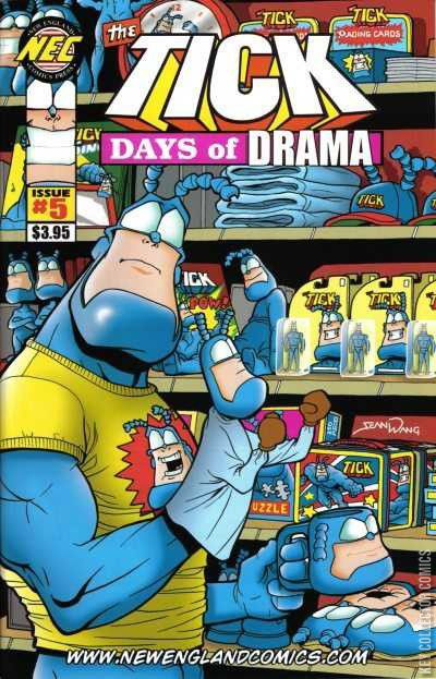 Tick meets The Sultan, his idol from the Golden Age of Super-Heroes! So, of course, the first thing they do is fight! Then The Sultan warns The Tick that Mentor is just using him to make money. Mentor is licensing merchandising rights to The Big Blue Guy! Mentor is also the silent force behind Blissburg, a city he created so that The Tick would have no competition for merchandising money in The City. The Tick could probably live with all this... until he discovers that Mentor is printing a Tick comic book!