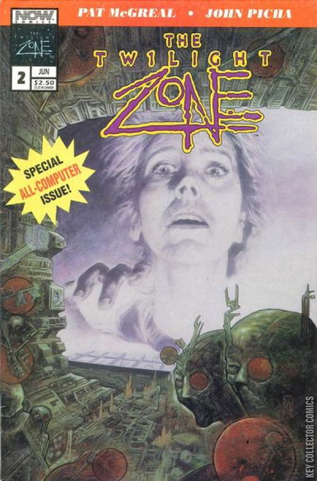 Released in two versions with identical interior contents and indicia, but different covers and cover-numbering. The indicia read: THE TWILIGHT ZONE, Vol. 3, No. 2 (Computer Special), June 1993. The newsstand version is labelled #1 on the cover; the direct-sales version is labelled #2 on the cover. Pull the Plug. This issue focuses on tales of the unexpected involving computers, an especially hot topic in 1993.