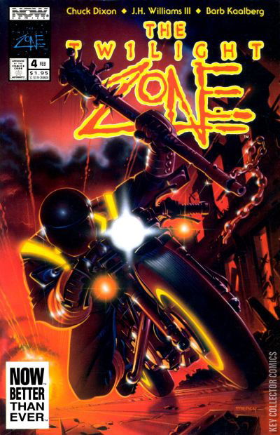 Highways of the Night - Written by Chuck Dixon. Art by J.H. Williams III and Barb Kaalberg. Cover by Ken Steacy. In an ultra-violent issue, a dark and mysterious biker terrorizes a community in...The Twilight Zone.