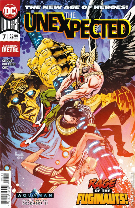 CALL OF THE UNKNOWN, PART SEVEN: "THE ANTI-GOD" The Unexpected tread where mortals fear to walk! Neon the Unknown, Firebrand and Hawkman unwittingly discover the birthplace of the Nth metal isotope, but there’s a catch: it exists outside the Multiverse in the dead world of Nil, guarded by one of the Tempus Fuginauts, who has already passed his guilty judgment! Someone must die for trespassing into Nil—and the Unexpected must be the ones to choose who lives and dies! What happens next in the archaeology of the Multiverse?