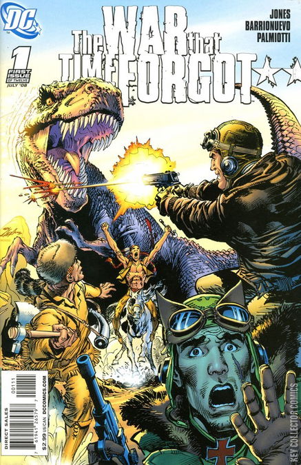 A lone USAF pilot, about to warn his superiors of the attack on Pearl Harbor, finds his craft suddenly crash-landing on a mysterious island populated with prehistoric creatures and soldiers of wars of the past, present and future — including Tomahawk, Firehair, and Hans Von Hammer, the Enemy Ace! What bizarre force has compelled these military masters of every era to inhabit the same strange territory? Can they survive without killing each other or being devoured by dinosaurs? Don't miss this incredible miniseries by the team of writer Bruce Jones (Hulk) artists Al Barrionuevo (DETECTIVE COMICS) and Jimmy Palmiotti and legendary cover artist Neal Adams (BATMAN)!