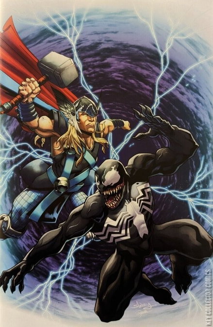 VENOM OF ASGARD, PART ONE Donny Cates writes Venom once again, alongside guest artist Salvador Larroca ! In this team-up of kings, Thor, King of Asgard, and Eddie Brock, King in Black, must set aside their personal differences to save the one thing they both love: Earth! LEGACY #753