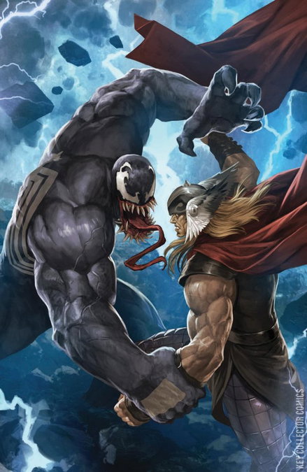 VENOM OF ASGARD, PART TWO THOR VS. VENOM—ROUND TWO! Hammer vs. tongue! Thunder vs. symbiote! Golden hair vs. pointy teeth! It’s the epic finale of this dark, twisted team-up between Thor and Venom! How will events from the current VENOM series impact the future of Asgard? Find out here! LEGACY #754