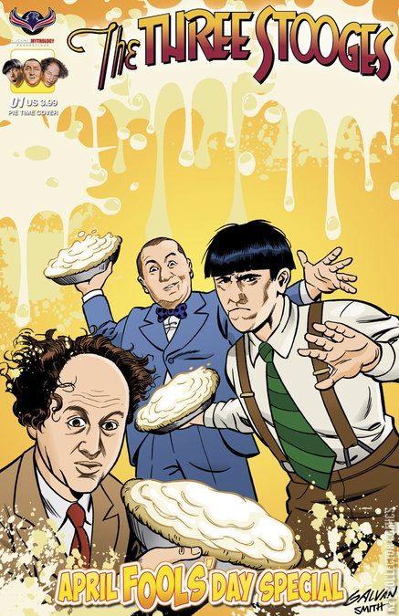 Why... I oughta! The kings of comedy return in a special April Fools' Day issue that celebrates mayhem and mirth The Three Stooges way! This issue features brand new stories using the likenesses of the original Three Stooges and is guaranteed to have you nyuk, nyuk, nyuking all the way home from the comic shop! If you are tired of the same-old same-old comics, add this pie-to-the-face issue to your reading pile and laugh it up with a true American original! Available with Main QR Talking cover by Greg LaRocque, Pie Time cover by Bill Galvan, Color Photo cover, and a special B&W Retailer Incentive Photo Cover.