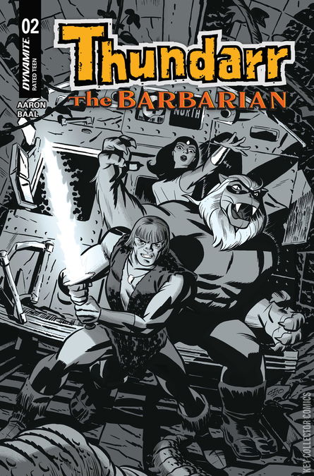LORDS OF DARKNESS! Across the face of a scarred and battered planet, the magic-wielding wizards who rule over the ruins of Old Earth are banding together to consolidate their grip on their fiefdoms’ downtrodden inhabitants. United by their insatiable thirst for power — and threatened by the unwelcome appearance of Thundarr and his growing band of resistance warriors — these evil sorcerors are poised to unleash their ultimate weapon: a spell that will take them into the past, giving them ultimate control over the future! Hard-hitting wordsmith JASON AARON (Thor, Avengers, Conan) and two-fisted ink-slinger KEWBER BAAL (Vampirella, James Bond) continue their electrifying update of the classic Saturday morning cartoon with Thundarr the Barbarian #2 — featuring conspicuously kinetic covers from MICHAEL CHO, FRANCESCO MATTINA, BJORN BARENDS, and JOSEPH MICHAEL LINSNER!