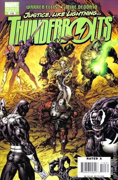 Faith in Monsters Part 1 Venom, lethal protector! The enigmatic Moonstone! Bullseye, the man who never misses! Songbird, mistress of sound! Chen Lu, the Radioactive Man! Swordsman, master of the blade! The mystery man called Penance! And Norman Osborn, the Green Goblin! They're America's newest celebrities, ready to take to the skies at a moment's notice in pursuit of those secret, unregistered superhumans hiding among us! They're the All-New, All-Deadly THUNDERBOLTS - making the world a safer place for ordinary people one would-be costumed hero at a time! In the wake of CIVIL WAR, Warren Ellis and Mike Deodato present a dark and disturbing take on Marvel's most wanted, where the line between hero and villain is difficult to find-if it exists at all!