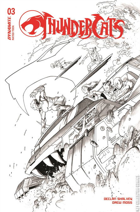 As the wary ThunderCats continue to explore their new home, Lion-O finds himself inexplicably drawn to Calica, the beautiful and mysterious survivor of the crashed Mu'Tant ship. But Panthro and Cheetara view the unfamiliar Thundarian with suspicion, and the ensuing confrontation threatens to fracture their fragile new society - leaving them vulnerable to enemies from both outside and within! The drama intensifies in this third chapter of the highly anticipated new series from award-winning author DECLAN SHALVEY (Old Dog, Hero Killer) and fan-favorite illustrator DREW MOSS (Gargoyles: Dark Ages) - both of whom contribute a cover for the issue along with acclaimed artists DAVID NAKAYAMA, LUCIO PARRILLO, and JAE LEE & JUNE CHUNG! ALL COVERS CARDSTOCK