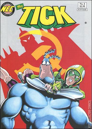 A total change of pace as The Tick meets The Red Scare, bad-guy-for-hire from Villains, Inc. Laughs galore as The Tick destroys Arthur's apartment looking for his hidden super-hero gimmicks and finally finds the "villain of his dreams"-or so he things! "Thank You God" panel is one of Ben Edlund's most famous Tick drawings.