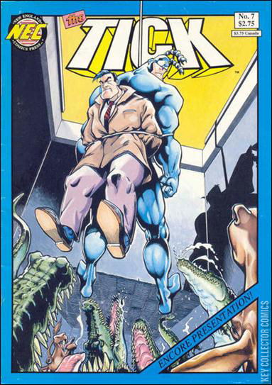 The Tick is deputized by Angus MacGuire (an agent from an ambiguous government agency) to stop Chairface Chippendale and minions from... read it and find out. First appearances in this issue Angus MacGuire Proffessor Chromedome and the Man-Eating Cow.