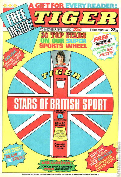 Home / IPC Magazines / Tiger / Tiger #13 October 1973 990 IPC Magazines Released October 1973 Tiger #13 October 1973 990 Add to Collection Want It Synopsis No synopsis available. Add to Collection Buy it on eBay Buy on eBay Low $2 Mid $10 High $30 Synopsis No synopsis available. Details Series Tiger Cover Date October 1973 Pages N/A UPC N/A Cover Price N/A Final Orders Cutoff N/A Creators No creators listed. Price Guide Log in or subscribe to access detailed graded price information and market insights. Log In Subscribe