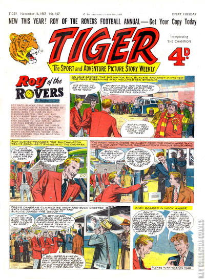 Home / IPC Magazines / Tiger / Tiger #167 IPC Magazines Released January 1954 Tiger #167 Add to Collection Want It Synopsis No synopsis available. Add to Collection Buy it on eBay Buy on eBay Low $25 Mid $75 High $250 Synopsis No synopsis available. Details Series Tiger Cover Date January 1954 Pages N/A UPC N/A Cover Price N/A Final Orders Cutoff N/A Creators No creators listed. Price Guide Log in or subscribe to access detailed graded price information and market insights. Log In Subscribe