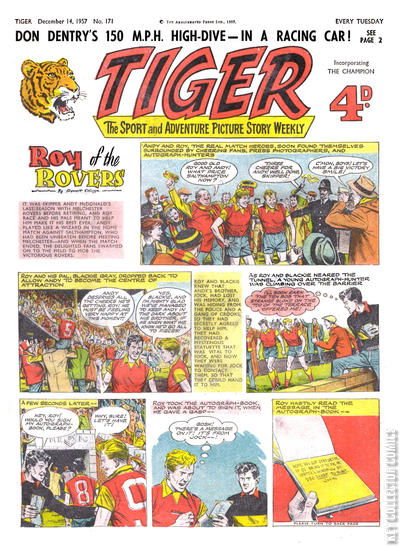 Home / IPC Magazines / Tiger / Tiger #171 IPC Magazines Released January 1954 Tiger #171 Add to Collection Want It Synopsis No synopsis available. Add to Collection Buy it on eBay Buy on eBay Low $25 Mid $75 High $250 Synopsis No synopsis available. Details Series Tiger Cover Date January 1954 Pages N/A UPC N/A Cover Price N/A Final Orders Cutoff N/A Creators No creators listed. Price Guide Log in or subscribe to access detailed graded price information and market insights. Log In Subscribe