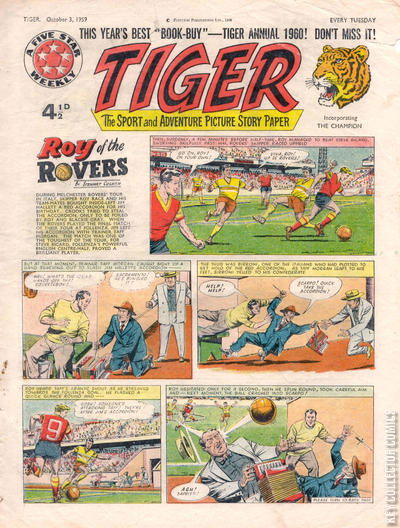 Home / IPC Magazines / Tiger / Tiger #3 October 1959 258 IPC Magazines Released October 1959 Tiger #3 October 1959 258 Add to Collection Want It Synopsis No synopsis available. Add to Collection Buy it on eBay Buy on eBay Low $8 Mid $25 High $90 Synopsis No synopsis available. Details Series Tiger Cover Date October 1959 Pages N/A UPC N/A Cover Price N/A Final Orders Cutoff N/A Creators No creators listed. Price Guide Log in or subscribe to access detailed graded price information and market insights. Log In Subscribe