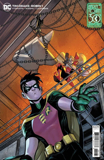 Step aside, Damian—the world’s favorite Robin has got this! That’s right, after years away, Tim Drake is taking center stage in a brand-spanking-new Robin series of his very own! A mystery over a year in the making takes shape, as a new villain who’s been hounding Tim from afar decides to take things up close and personal, putting Bernard and everyone else Tim cares about in peril as things go from bad to worse for the world’s oldest and canonically tallest Robin [no, I will not be fact-checking that]. All that and Tim finally carves out a corner of Gotham City just for himself, and sets up shop in his very own…murder shack boat? Fan-favorite writer Meghan Fitzmartin teams up with beloved Harley Quinn artist Riley Rossmo to define the next chapter in Tim’s life. And as if that wasn’t enough, break out your skateboards and motorcycles cuz we’ve assembled a murderer’s row of artists to draw the 1990s’ One True Robin™ in his various looks from over the years!