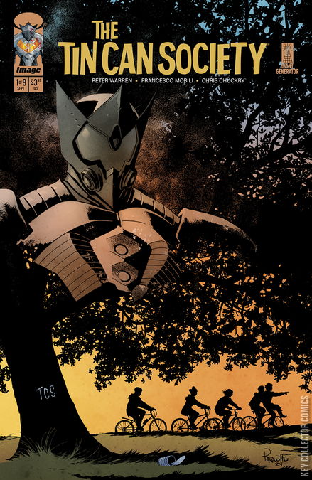 MINISERIES PREMIEREThe first stunning issue of a brand-new miniseries from Giant Generator showcasing the first comics work by screenwriter and incredible talent** PETER WARREN** (_The Incal _feature film, Kill Me) with jaw-dropping art by FRANCESCO MOBILI (X-Men, SCUMBAG) and beautifully colored by CHRIS CHUCKRY (New X-Men, Gen 13).Johnny Moore is a world-famous tech mogul known as much for his work pioneering mobility aids for people with disabilities (like himself) as he is for moonlighting as the metal-suited vigilante, CALIBURN. But when Johnny is found murdered and his suit stolen, his estranged childhood best friends reunite to solve the mystery of his murder.THE TIN CAN SOCIETY is a heartfelt and human look at the evolution of friendships across a lifetime, at disability and ableism, and the destructive power of fame.