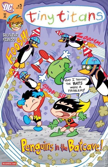 More zany Tiny Titans adventures! Alfred lets the boys spend an afternoon in the Batcave, a high-spirited debate occurs when the Tiny Titans try to figure out the difference between a superhero and a sidekick, Show and Tell day at Sidekick Elementary has hilarious results, and see how Beast Boy tackles science class. This plus even more fun as the Tiny Titans virtually leap off the pages!