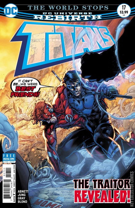 THE FALL OF TROY, PART 1 As the Titans face their darkest hour, the terrible truth about the team’s traitor is finally revealed! But how did it come to this? What could possibly turn friend against friend? All the cards are on the table in this stunning issue destined to change the Titans forever!