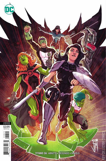 INTO THE BLEED, FINALE It’s all been building to this! Witness the battle for the fate of the entire Multiverse as our heroes tackle Mother Blood and her armies of Unearth! Mother’s plan to use the Bleed to spread her power throughout every corner of the fabric of reality has reached its zenith, and she’s pulling out all the stops to see to it the Titans fail in stopping her. But even with Raven’s soul-self reunited, can the team rescue their heavy hitters Kyle Rayner and Steel before it’s too late? Don’t miss this melee of multiversal mayhem! FINAL ISSUE!