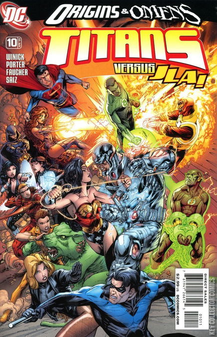 ADULT SWIM / ORIGINS AND OMENS It's Titans vs. the JLA! In the aftermath of DCU: DECISIONS #4, the JLA wants Jericho, but the Titans don't give up on one of their own. In the end, though, it looks like they'll lose another member!