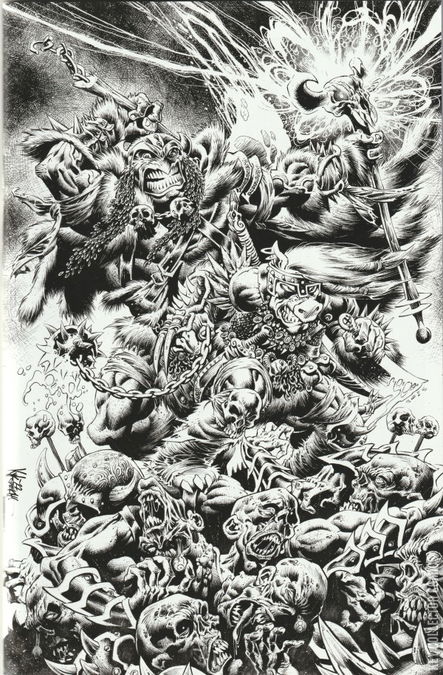 Team Up with Cerebus :� This story begins as Renet, the apprentice to time master Lord Simultaneous, "borrows" her boss' sceptre that contains the "sacred sands of time." The wand allows its wielder to be taken anywhere in time and space by merely wishing to go. Just as Renet grasps the sceptre, she is discovered by Simultaneous, who is not happy with her. In fear and desperation, Renet wishes to be sent to New York, circa 1986.� As the Fates would have it, Renet is transported to a rooftop in New York City, where the Turtles are goofing around. Renet quickly makes friends with the boys when they're suddenly interrupted by an enraged Lord Simultaneous. Renet wishes to be taken "anyplace on Earth before humans recorded time!"� Back in the past, we find Cerebus being awakened by his henchmen. It seems that the men are uncomfortable with the aardvark's plan to invade a foreboding castle and so they announce their plan to desert him. Cerebus threatens them and tries to get back to sleep, when Renet and Turtles emerge through a portal in a flash of magical light. As the Turtles struggle to their feet, we see that within the castle a satyr-like being awakes, alerted to the presence of the Time Sceptre.� Leo apologizes to Cerebus for crash landing in his camp, but the aardvark is in no mood for discussions. As the two prepare for battle, Renet tells them to chill out and offers to explain everything. While Renet tells the tale of why she's bouncing through time (she was bored), Savanti Romero (the satyr-like dude) and his army rush out of the castle to fetch the Sceptre.� Our heroes hear the approaching warriors too late, and while they make efforts to escape, Savanti easily overcomes them with magic and takes the Time Sceptre. The wizard and his men retreat back to the fortress and leave our heroes unconscious on the ground.� A few hours later, the TMNT, Renet and Cerebus find a town and go into a tavern. Cerebus arranges for a mercenary force to attack the castle at dawn by lying to them. The next morning...
