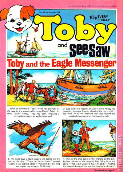 Home / IPC Magazines / Toby / Toby #88 IPC Magazines Released January 1976 Toby #88 Add to Collection Want It Synopsis No synopsis available. Issue 5 of 13 Add to Collection Buy it on eBay Buy on eBay Low $2 Mid $10 High $30 Synopsis No synopsis available. Details Series Toby Cover Date January 1976 Pages N/A UPC N/A Cover Price N/A Final Order Cutoff N/A Creators No creators listed. Price Guide Log in or subscribe to access detailed graded price information and market insights. Log In Subscribe