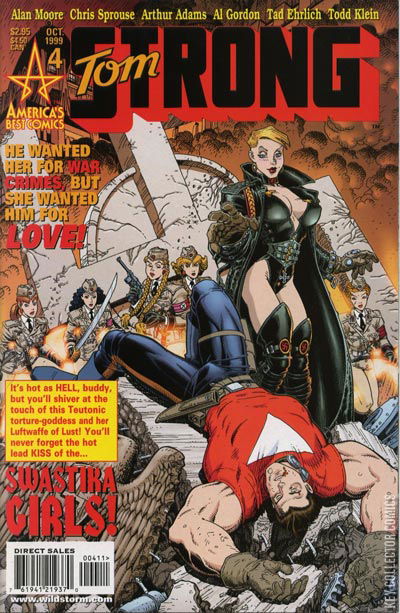 " Swastika Girls" This issue plunges us back to the smoking ruins of a strangely unfamiliar Berlin in the last days of World War II, where we witness the alarming confrontation between Tom Strong and the Nazi superwoman Heidi Weiss amidst the rubble and the shadows of a broken Europe. No fan of our pulp titan can afford to miss!
