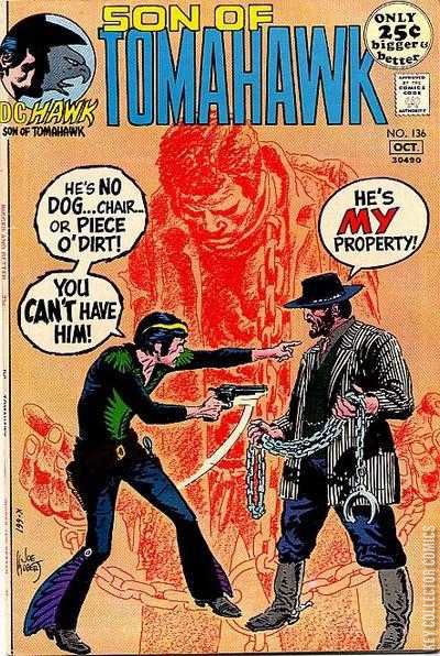 Cover art by Joe Kubert. A Piece of Sky starring Hawk, Son of Tomahawk, script by Robert Kanigher, art by Frank Thorne. The Stallion starring Firehair, script and art by Joe Kubert. Presidents' Firearms starring Wild Frontier, script and art by Sam Glanzman. The Secrets of Sgt. Witch Doctor starring Tomahawk, script by France Herron, art by Fred Ray. The Death of Tomahawk starring Tomahawk, script by France Herron, art by Fred Ray.