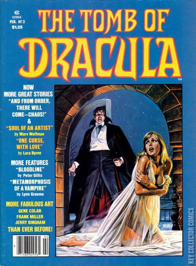 Stories included: "And Out of Order Will Come -- Chaos!" "One Curse, With Love" and "Soul of an Artist." Lynn Graeme details Lilith in "Metamorphosis of a Vampire" with rough sketches by Frank Miller. Peter Gillis compiles a probable outline of the career of Count Vlad Dracula in "Bloodline." Jerry Bingham frontispiece illustration. Bob Larkin cover.